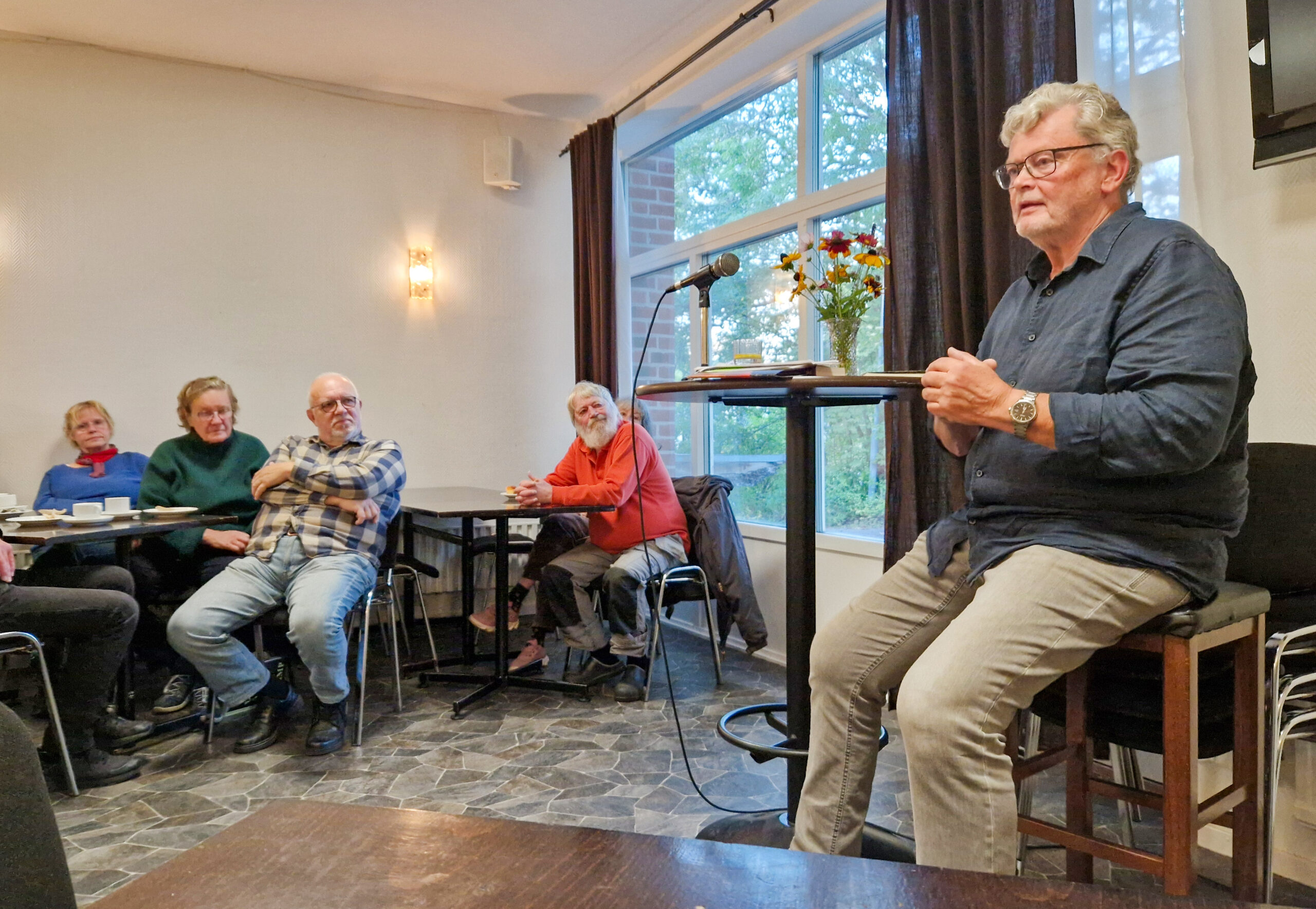 Kulturkafét var välfyllt när vi lyssnade till Birger Schlaug som tala över Vad skall vi ha samhället till. Birger gav fler exempel på skarpa iakttagelser över vår samtid. Statsbudgeten har inte längre som målsättning att vi alla få ett bättre liv. I mitten av 90-talet ändrades fokuset, nu står den eviga tillväxten i fokus med skenande ojämlikhet. Vi måste vara på vår vakt att bakom skattesänkningar döljer sig avgifter på vad vi idag ser som självklar, fri sjukvård säger Birger.Höstens program innehåller både dans och föredrag om. Den 5 nov kommer Ola Engelmark, skogsekolog och författare (känd från Högtorpsgård) att tala över sin nya bok Skogen är min kropp. Om allt vill sig väl kommer vi tillsammans med bygderådet arrangera DANS som det var förr i tiden, också i november. Återkommer med mer information.